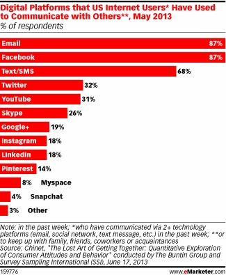 In keeping with these findings, the survey also found that e-mail and Facebook are where most respondents log in most often to communicate with others: